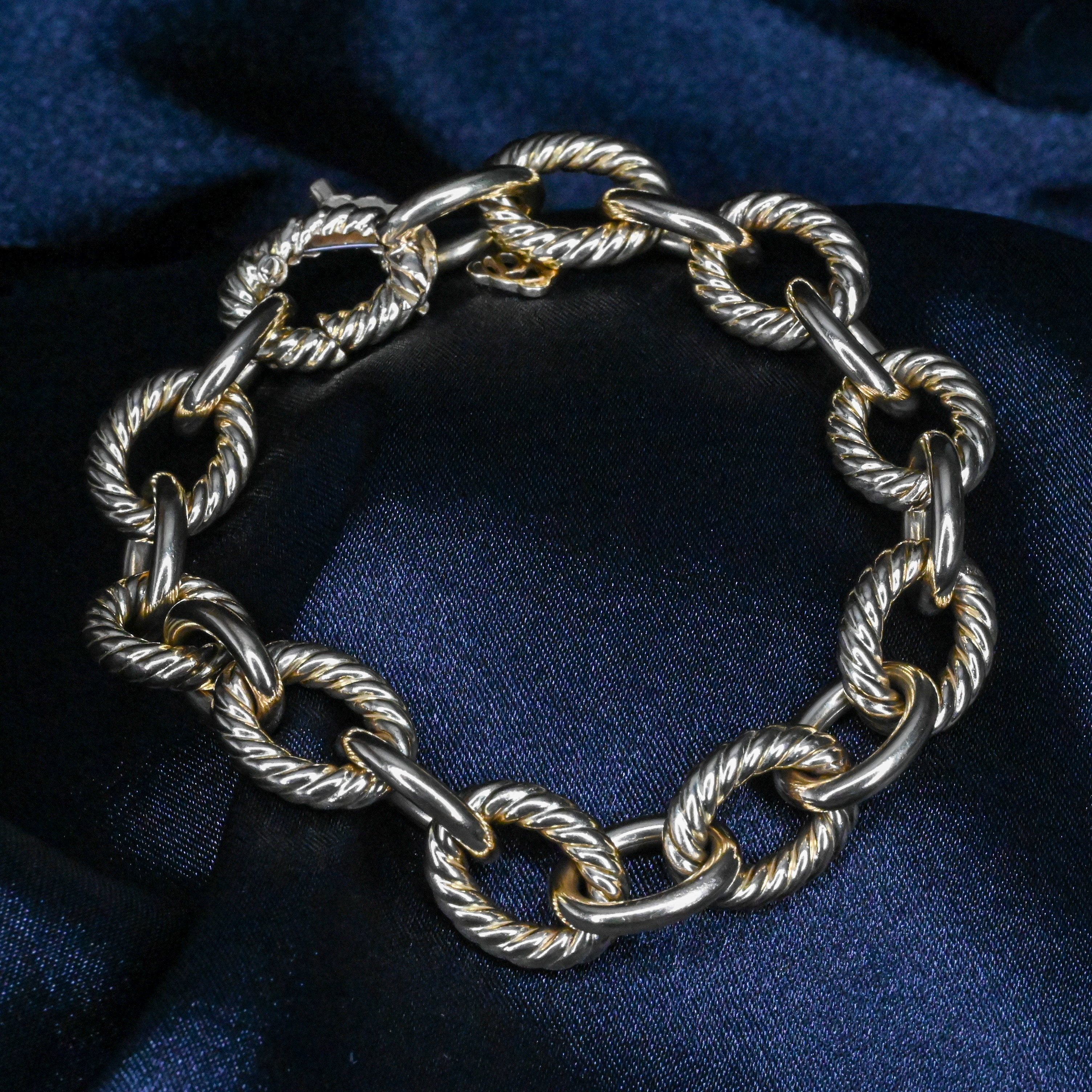 This David Yurman bracelet is expertly crafted in rich 18kt yellow gold, weighing an impressive 31.6 grams. Its substantial feel is balanced by the brand’s signature attention to detail offering both durability and timeless elegance. Designed to stand alone or complement a curated stack - this piece embodies modern luxury with enduring appeal. Sized at 6.75 inches.